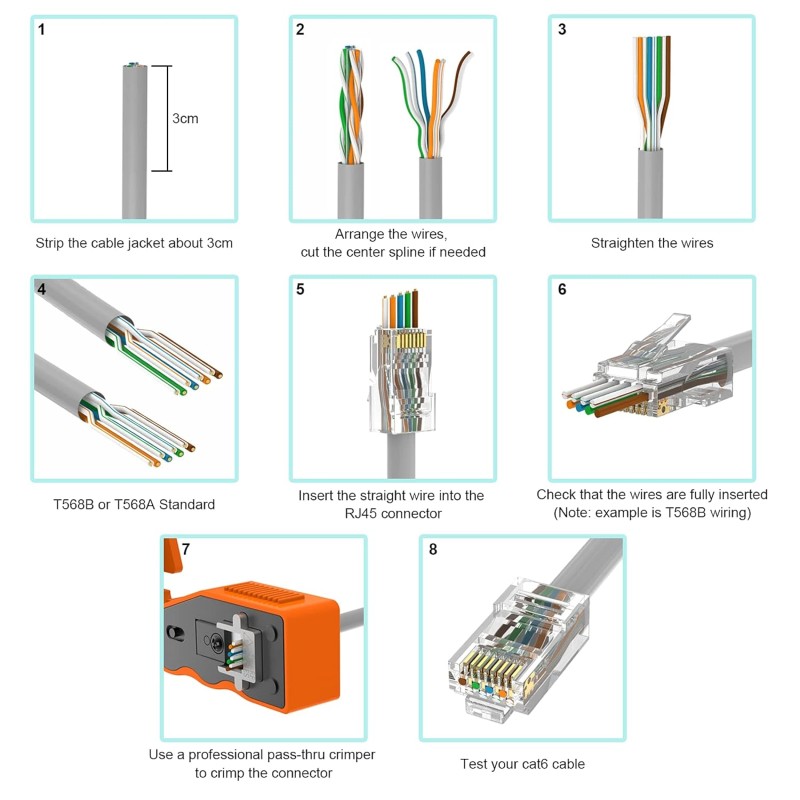 - Home and Office Network Wiring - The Cat6 pass-through ends are widely used in home network cables, routers, switches, patch panels, etc., and are very suitable for the building automation industry and IT work. Whether you are a professional security installation technician or a novice installer, you can easily use this connector.