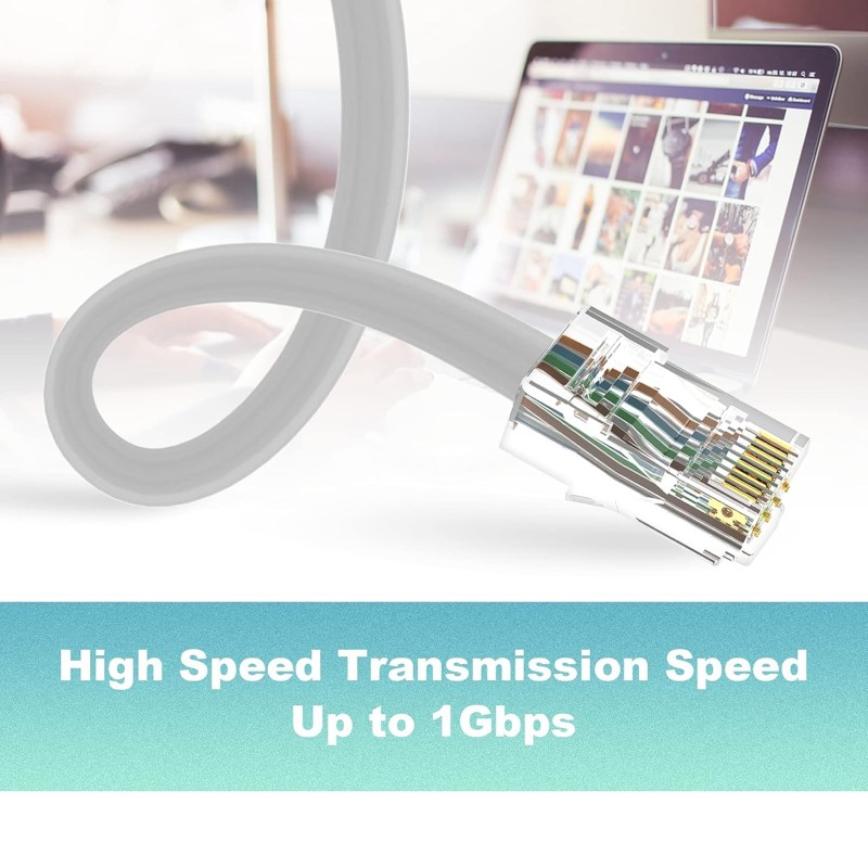 - Stable Signal Transmission: The Cat6 connectors transmission speed can reach 1Gbps. 50μ gold-plated contacts resistant to plugging and unplugging, enhancing signal transmission capability. 3 prong chip with 8P8C sturdy structure ensure a tight connection and minimize signal attenuation.